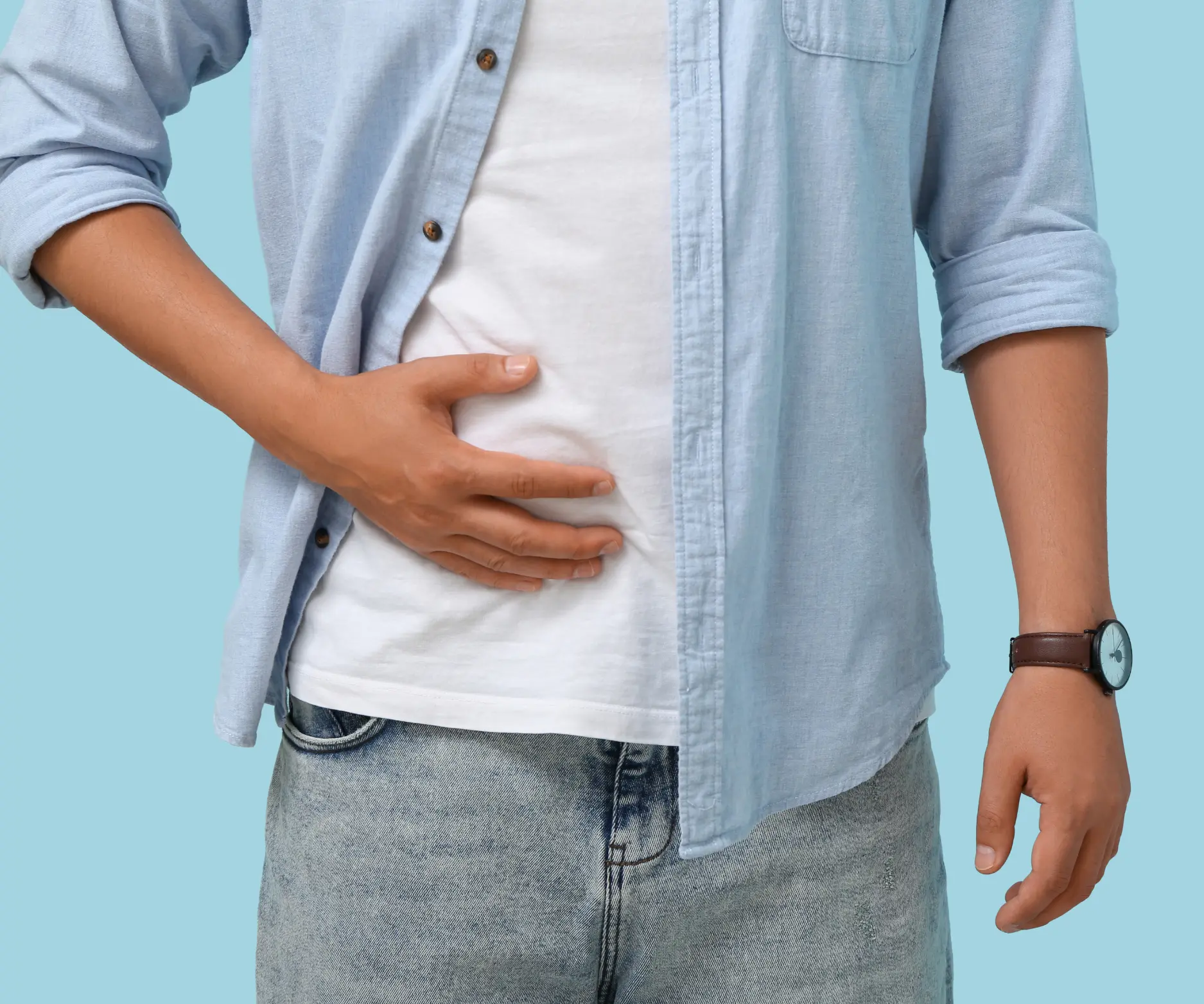 Visible bulge and discomfort due to weakness in the abdominal wall. Laparoscopic repair ensures safe treatment with faster recovery.